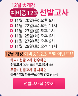 본원에서 지정한 날짜에 입학 및 반배치를 위한 ‘선발고사’가 진행됩니다. -전형과목: 영어,수학 |