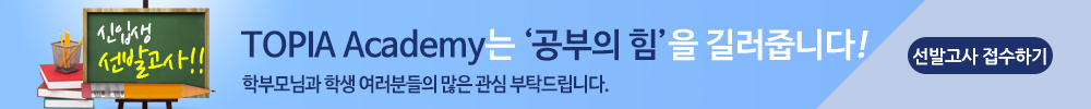 초등 때부터 TOPIA Academy와 함께해서인지 딱히 인생의 고비랄 것도, 질풍노도라는 사춘기라는 것도 없이 아무 탈 없이 잘 지내온 것 같습니다. 그런 의미로 TOPIA Academy는 저의 또 다른 집이나 마찬가지였습니다.